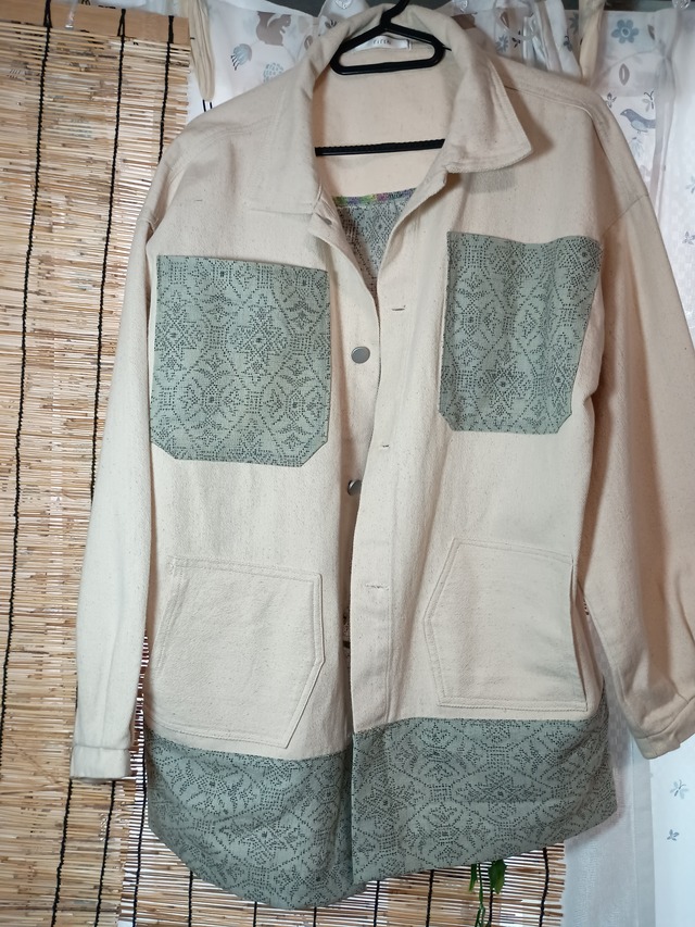 麻の着物と生成りジャケットのリメイク/ポケットたくさん