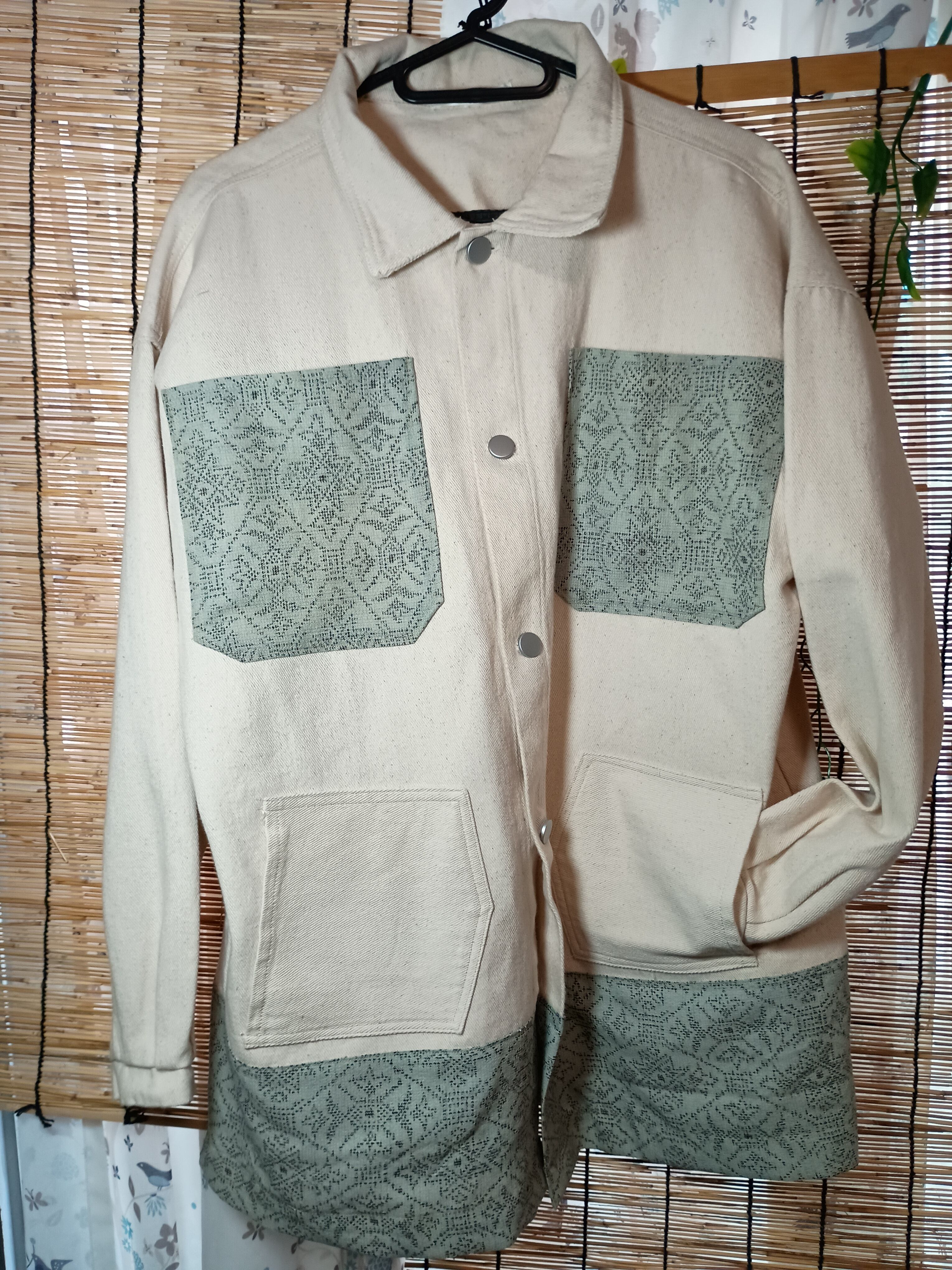 麻の着物と生成りジャケットのリメイク/ポケットたくさん